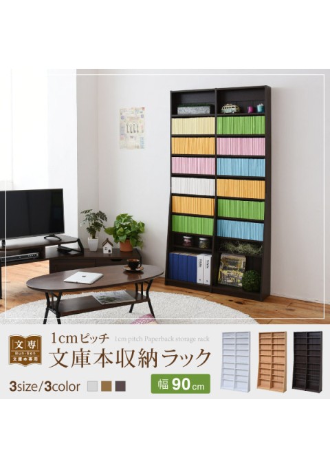 カラー:DB ダークブラウン 1cmピッチ 文庫本収納ラック 本棚 幅90 省スペース スリム 高さ 180 cm 木製 リビングシェルフ 棚板 かんたん調節 メモリ付き