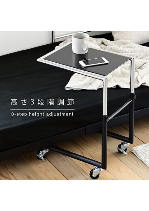 カラー:BKSV ベッドサイドテーブル スリム サイドテーブル キャスター 付き ベッド横テーブル ガラス コの字 ブラック ソファ サイドテーブル ベッド脇 高さ 調整 JK-PLAN