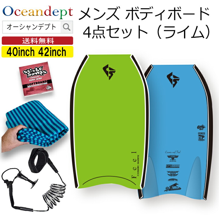 ボディボード メンズ 4点 セット ライム FEEL 男性 コスミックサーフ COSMIC SURF