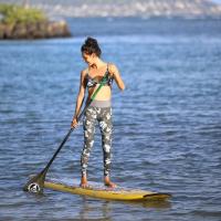 ボードドーリーに乗せたSUPを楽に牽引できます。