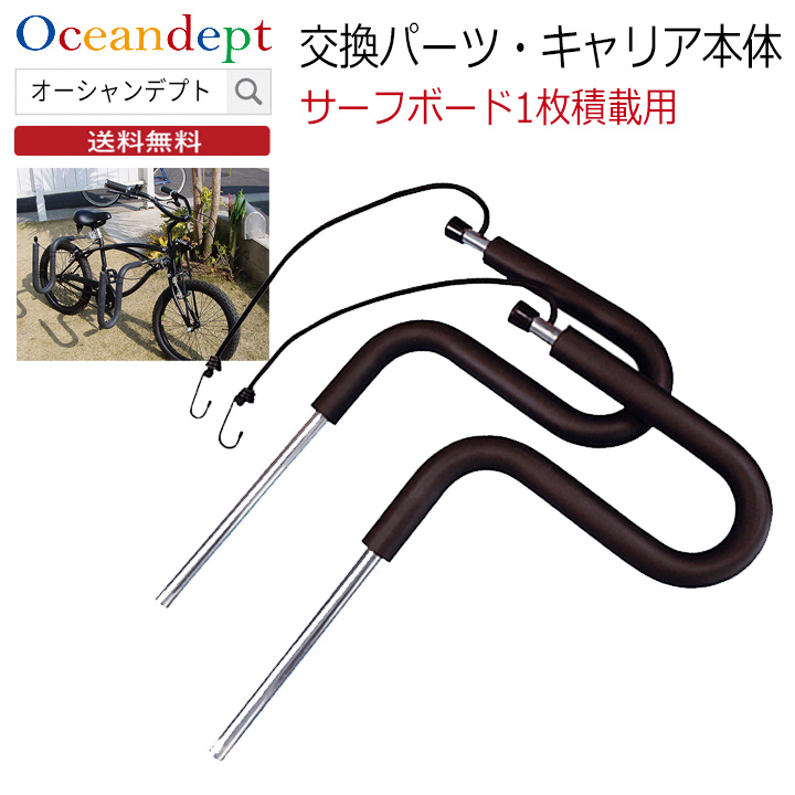 説明 | ステンレス製でサビに強いキャリア本体 ・サーフボード1本積み用 です。また、自転車、スクーター共用です。 ショートボードまたは、ファンボード、ロングボードのいずれか1枚を自転車またはスクーター(ショートボードに限る)に積載できます。 別売の自転車アタッチメントまたはスクーターアタッチメントと組合わせて使用します。単品では使用できません。 キャリアのパイプ径は19.1mm。 キャリアの脱落防止リングが付属します。 |