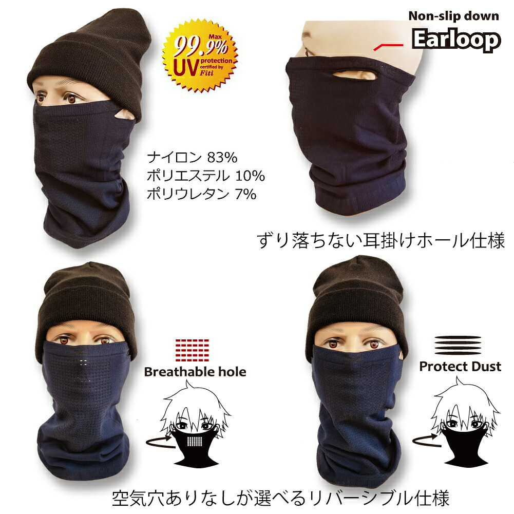 機能性型・吸汗速乾保温マスク伸縮性抜群の防塵・防寒・UVカット・吸汗速乾素材のスポーツ向けフェイスマスクです。