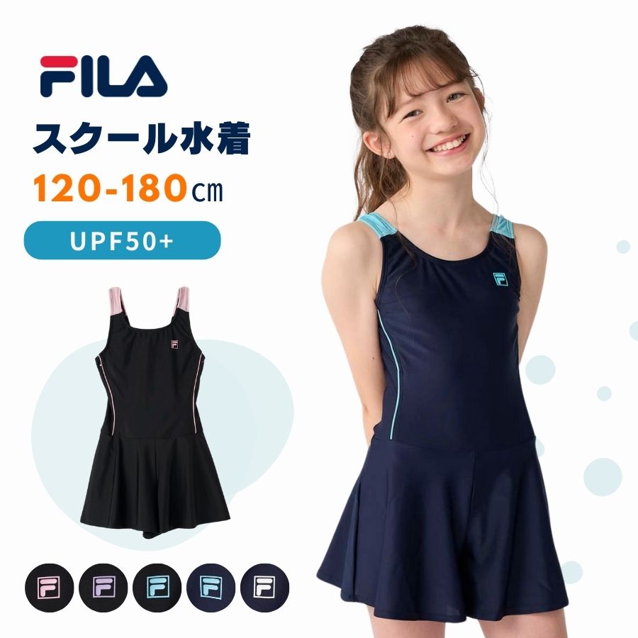 スクール水着 女子 子供 ワンピース キッズ 女の子 女児 UVカット 水泳 入学準備 小学生 中学生 学校 フィラ 120 130 140 150 160 170 大きいサイズ 174101