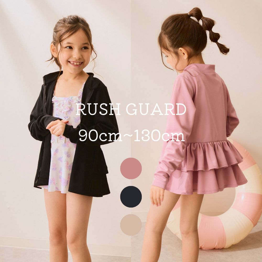 ラッシュガード キッズ 長袖 ジップ フルジップ フリル UVカット 日焼け対策 90 100 110 120 130 140 150cm ペアルック 親子コーデ 夏 175120