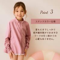 キッズモデルは指穴付き&スタンドカラーにしているので首元や手の甲まで日焼け対策ができます。フリル量を大人に比べ少し多めにしているので、バックスタイルがとってもキュート!親子でお揃いにしても、姉妹でお揃いにしてもとってもかわいいです。素材は水着っぽくなりすぎない軽めの素材で、持ち運びが楽!洗濯しても乾きやすいので、保育園用にもオススメです。アウトドアや旅行、ちょっとしたお散歩や公園にもオススメなマルチに着れるウェア。