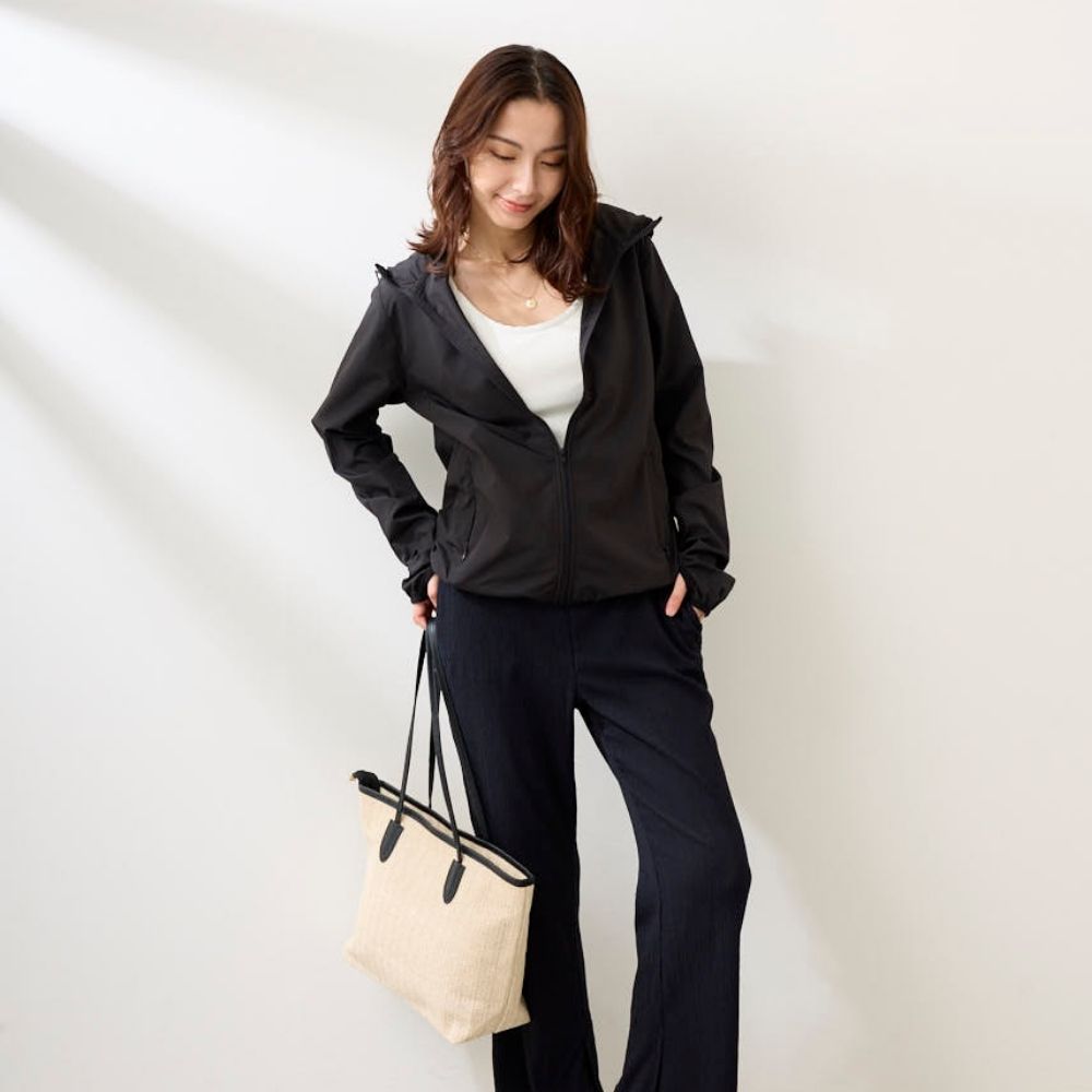 UV90%以上カット、UPF値(紫外線防止指数) UPF50+の素材を使用しており、毎日のUV対策はもちろん、スポーツやレジャーにも最適なアイテムです。ピタッとしすぎない素材のため、さらっと羽織れます。暑い日が続く夏の季節に一つは欲しいアイテムです。