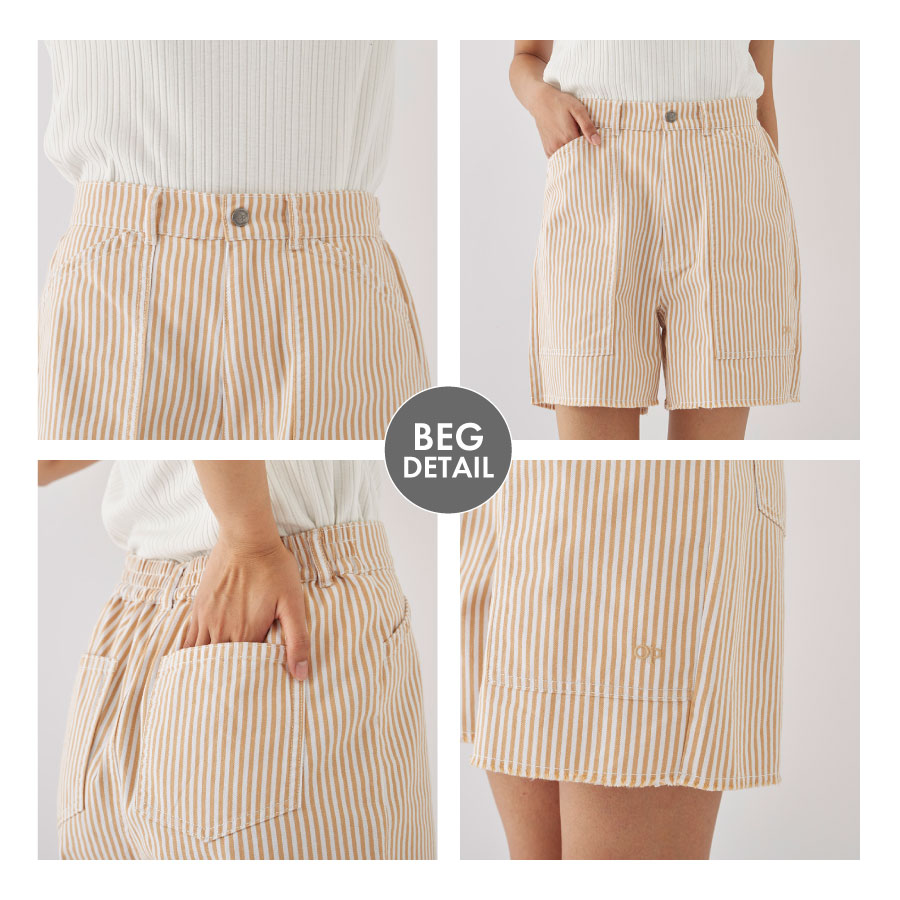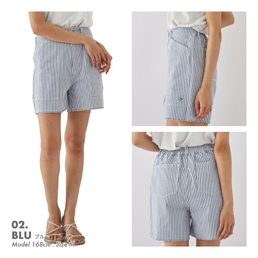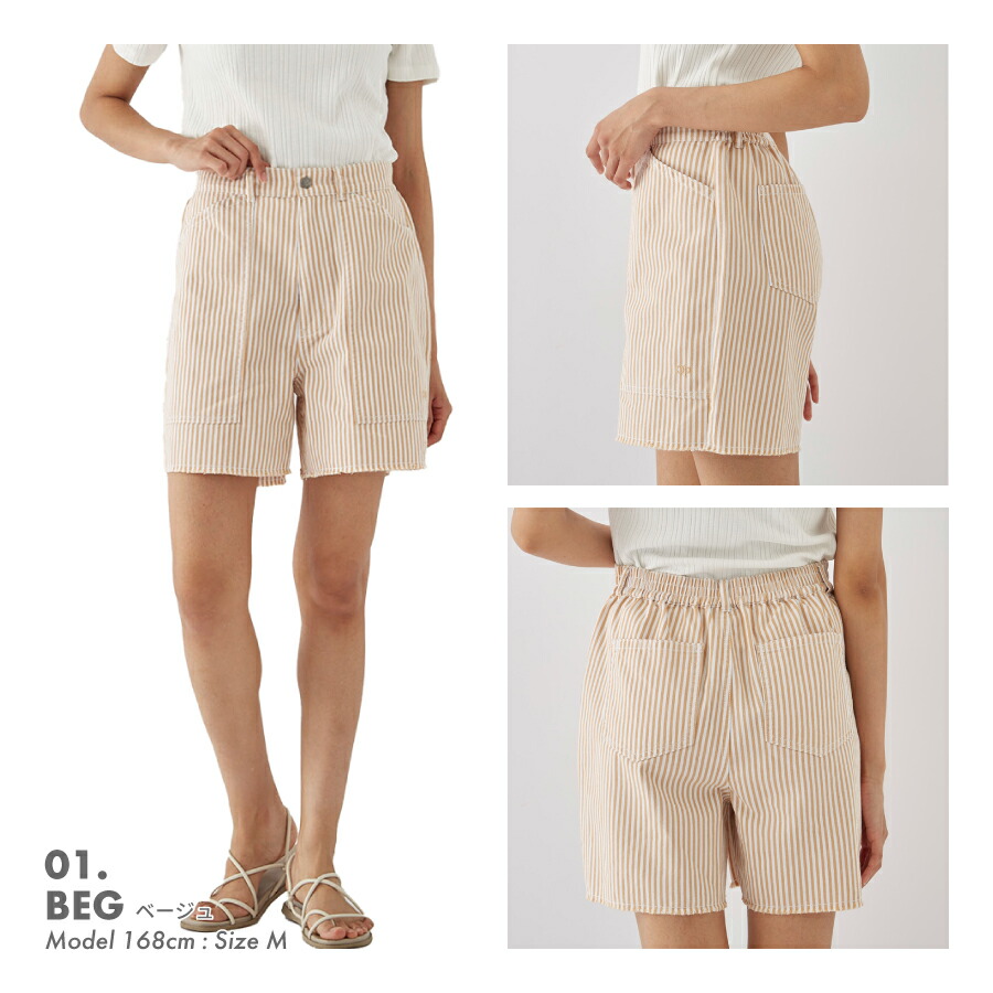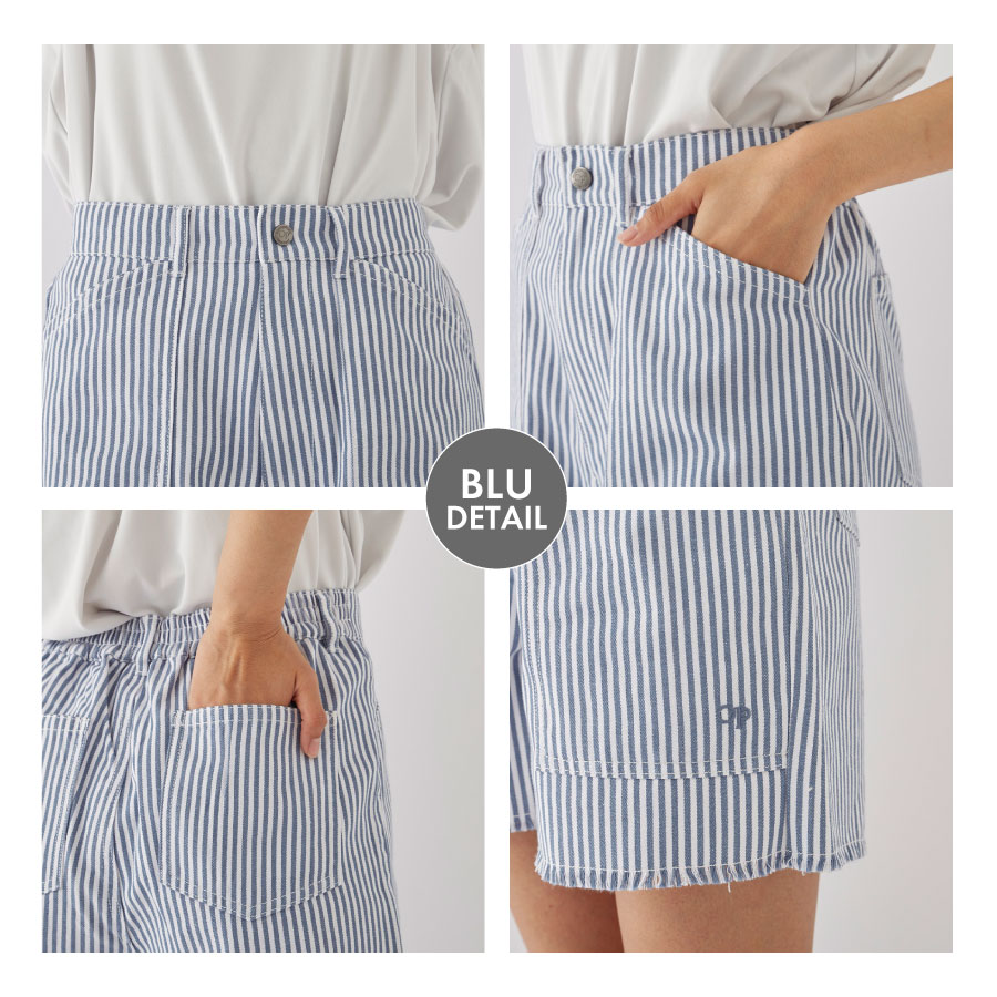 夏らしく爽やかなカラーのストライプ生地を使ったショーツ。切りっぱなしのラフな雰囲気が可愛い1枚です。