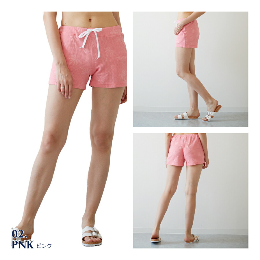 ヤシの木飛び柄エンボス加工ショーツ。同色のエンボス加工で合わせやすく、おしゃれなショーツ。