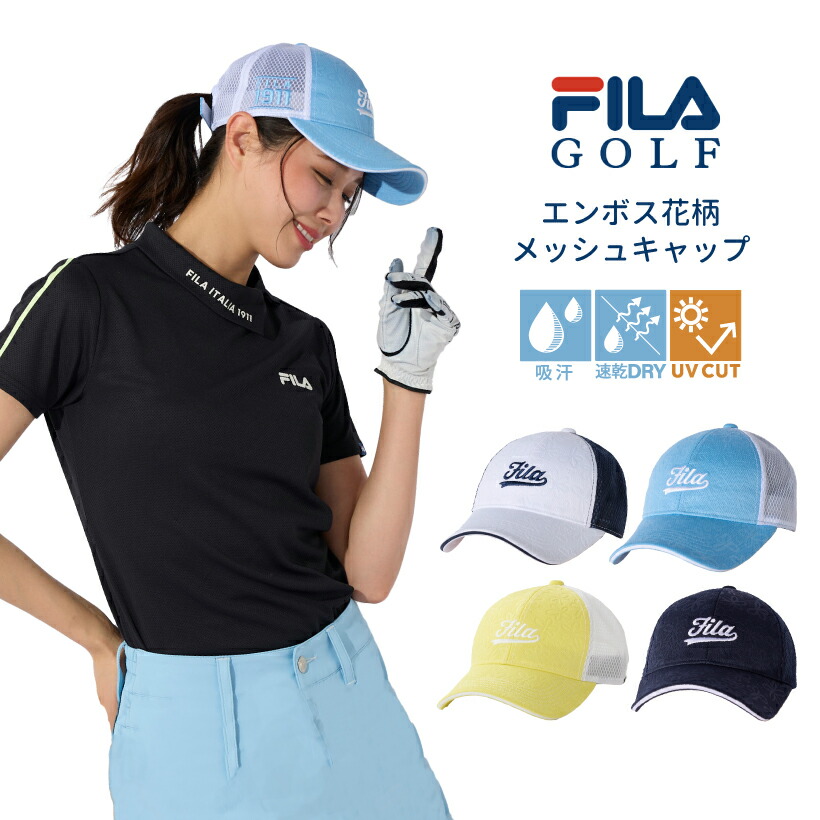 レディース エンボス 花柄 メッシュキャップ 軽量 ロゴ 吸汗速乾 FILA GOLF フィラ ゴルフ 753905