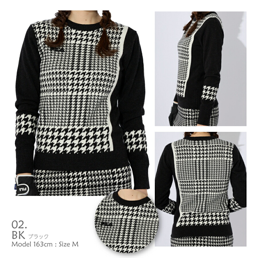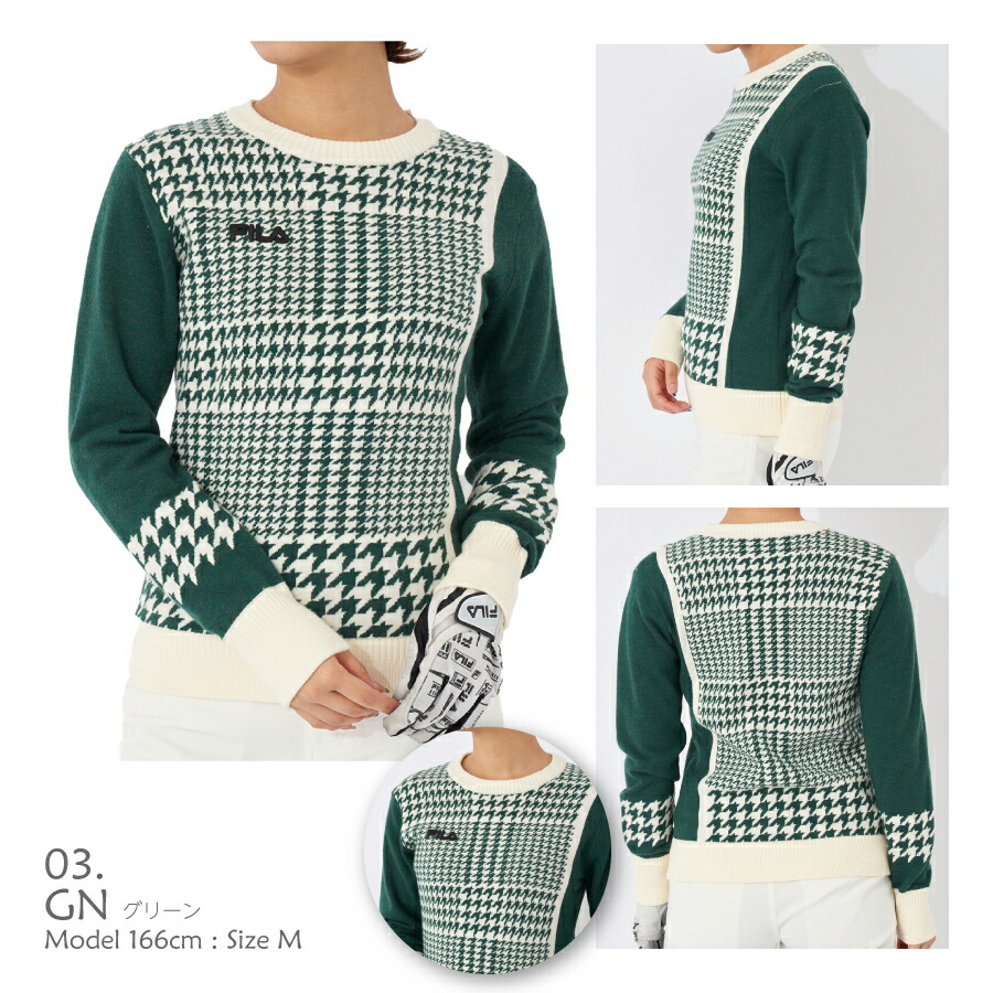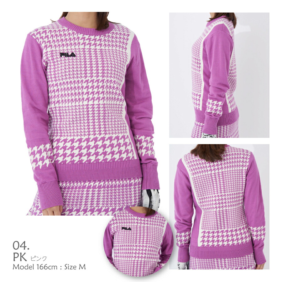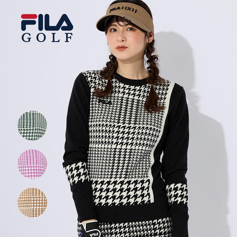レディース ゴルフ セーター FILA GOLF ニット S M L フィラ グレンチェック柄 ブラック ブラウン ピンク グリーン 793781