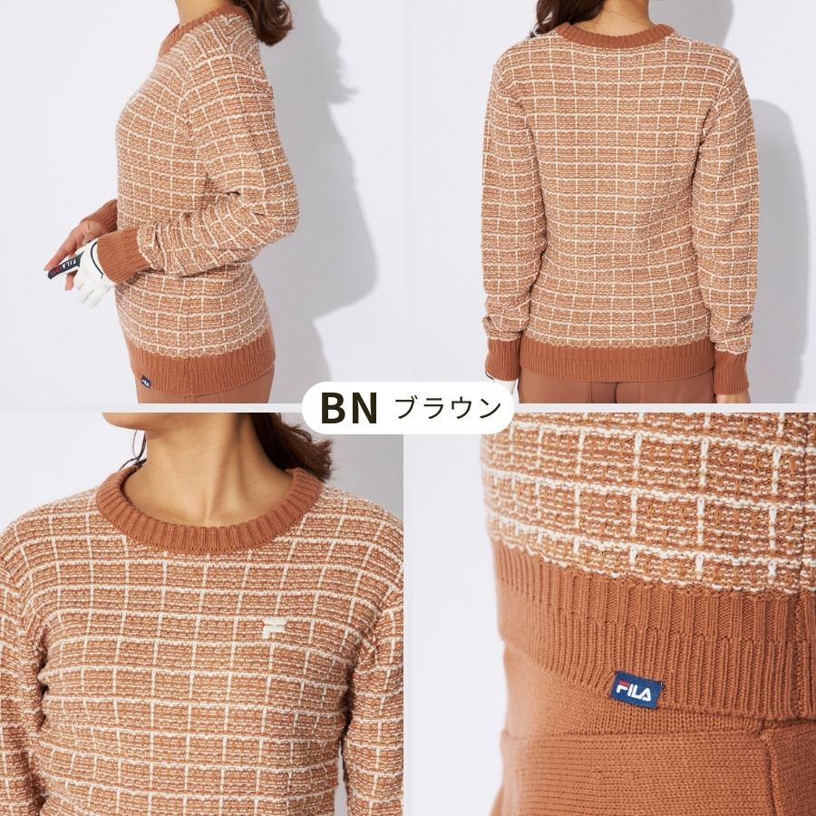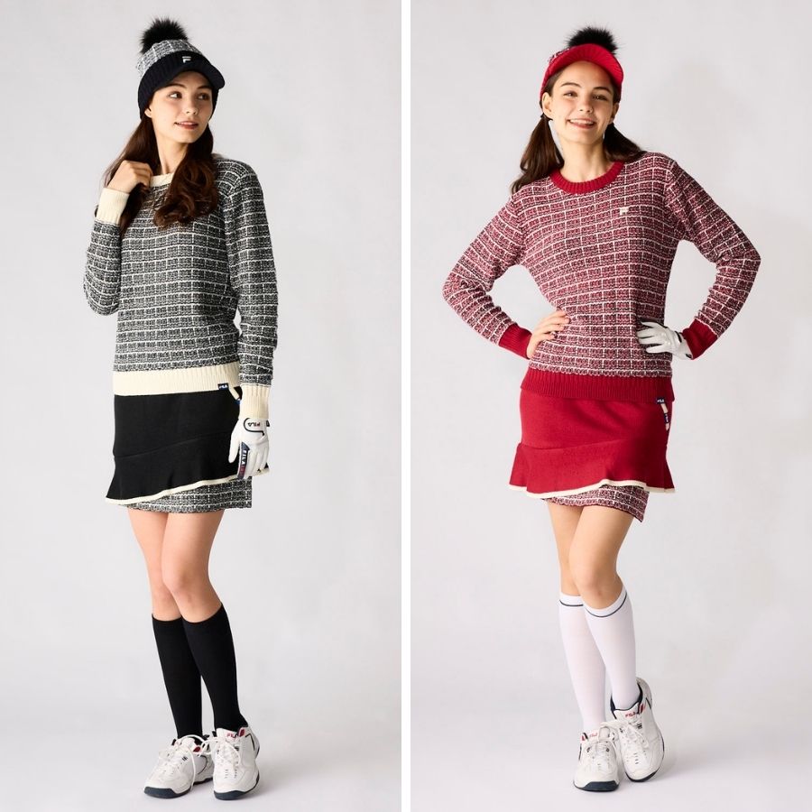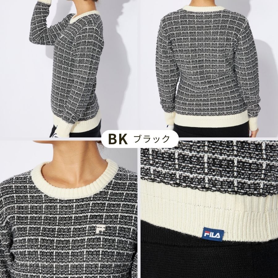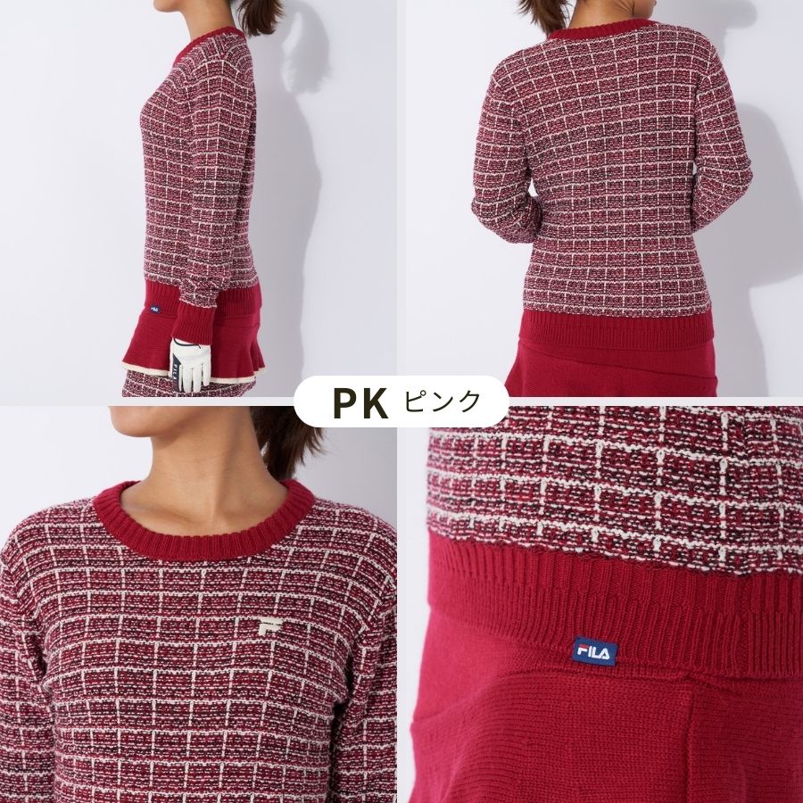 コーディネートのアクセントに。表面感のあるツイードライクな編地がかわいいクルーネックニットです。同素材スカートとのセットアップコーデがおすすめ。