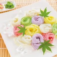●商品内容:手延べ三輪素麺 木箱入り(かぼす・紫芋・うめ・しそ・白)各50g×2束