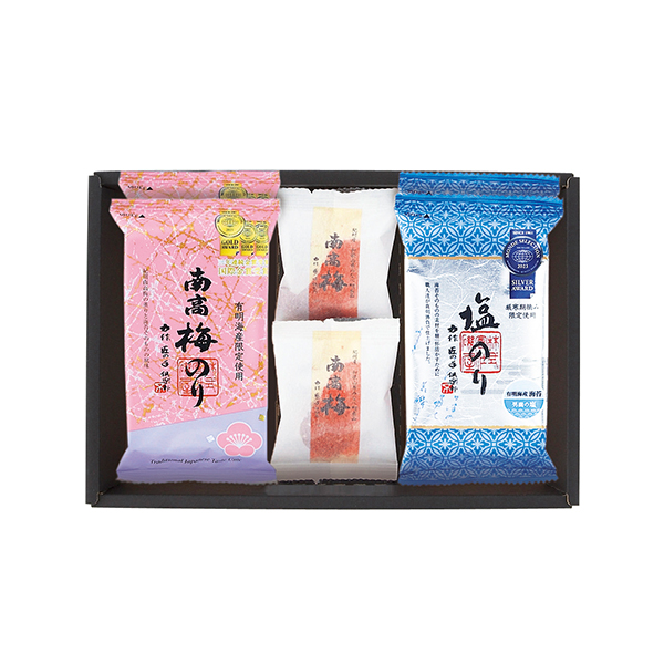 ●商品内容:金賞 南高梅のり(8切6枚)×2・銀賞 有明海産塩のり(8切6枚)×2・南高梅個包装×2 【小麦・えび・かに】