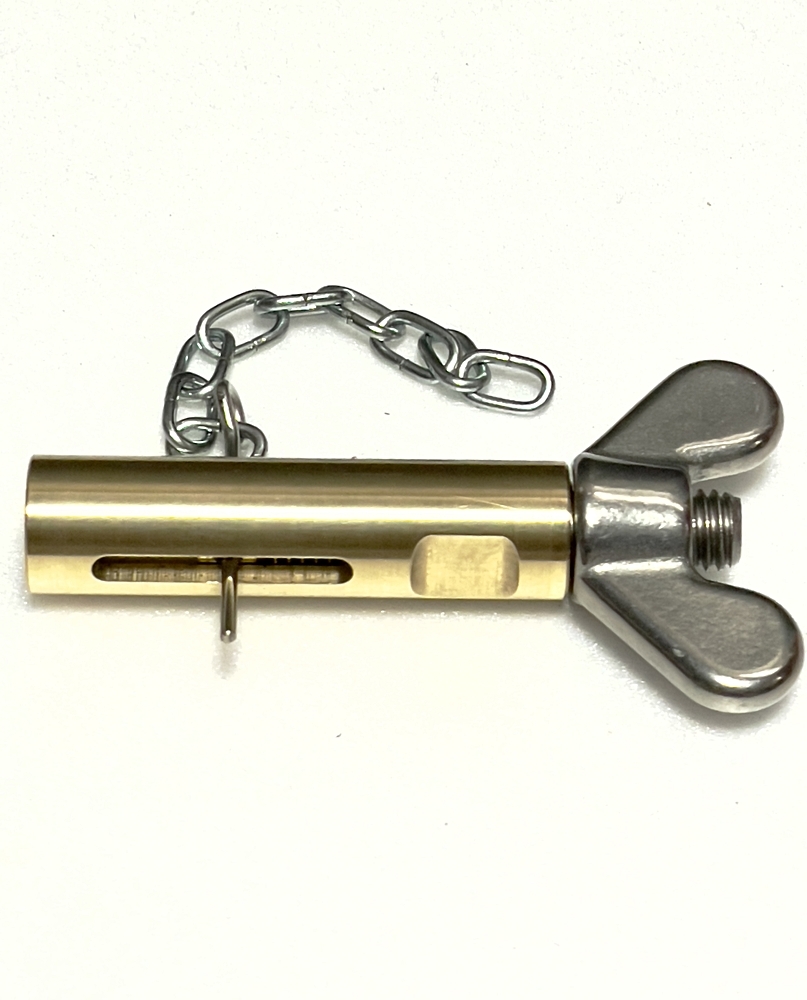 大きな蝶ネジに変更して少ない力で簡単に外せます。本体を滑らかな真鍮製にして形状も変更しました。