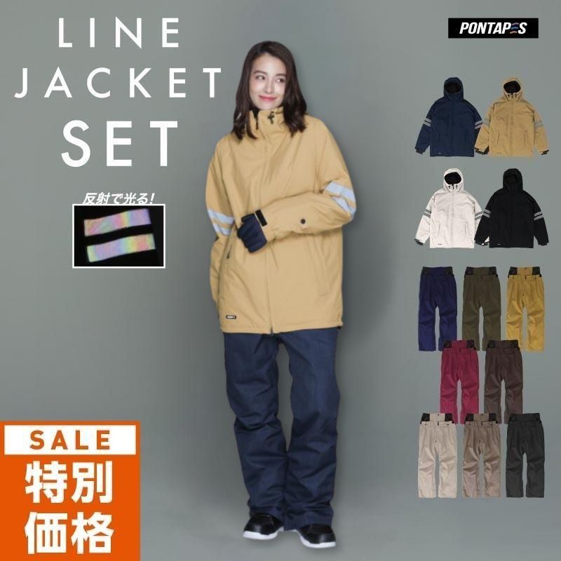 シンプルデザインにリフレクタ―二重ラインが入ったジャケットのセットアップ!ナイタースキー場で光放ち写真映えをします。
