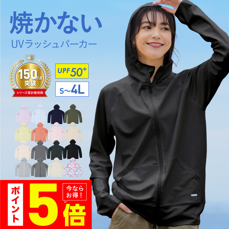 ラッシュガード パーカー レディース フード付き 長袖 UPF50+ UVカット98% 冷感 速乾 体型カバー 水着 水陸両用 大きいサイズ 黒 ブラック IR-7100