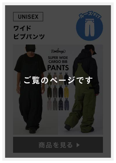 2025-2026モデル namelessage/ネームレスエイジ ユニセックス ワイドシルエット スノーボードウェア スーパーワイドカーゴビブパンツ age-739BB