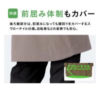 後ろ裾部分は前屈みになっても腰回りをカバーするスワローテイル仕様。自転車などの姿勢でも安心。