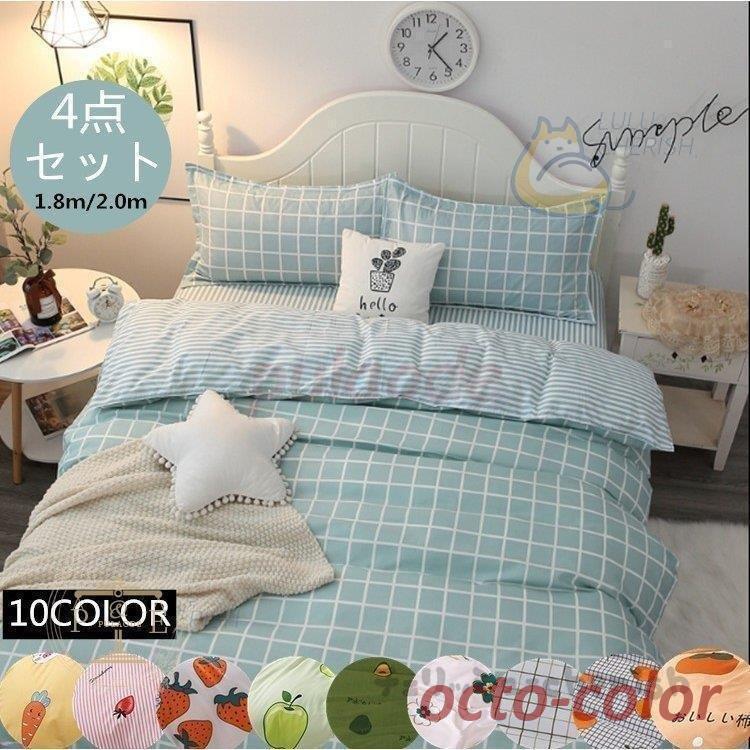 寝具セット 布団カバーセット 4点セット 布団カバー 枕カバーシーツ シートセット 洋式和式兼用 ダブルベッド用 防臭 防ダニ 抗菌 洗える 速乾 可愛い柄 卒業式