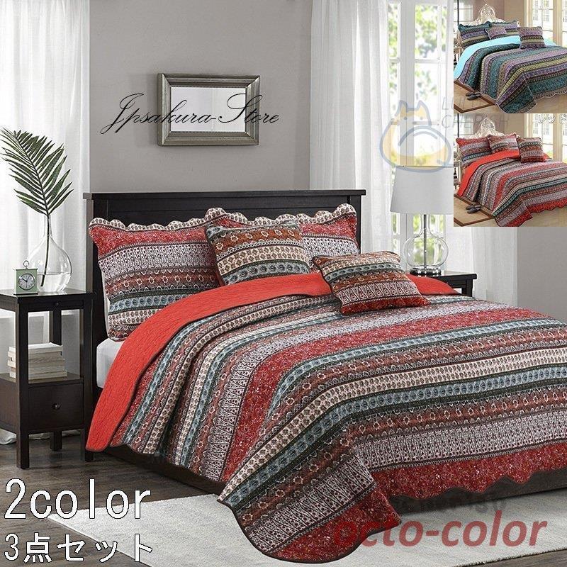 ベッドカバー マルチ カバー ク風北欧 寝具カバー 3点セット ベッドスプレッド キルト おしゃれ ダブル 四季適用 高質感 掛け布団230*250 175*220【母の日】