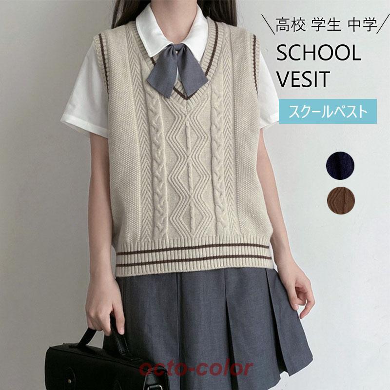 スクールベスト 女子 学生服 スクール Vネック 重ね着 大きいサイズ 体型カバー シンプル 通学 春 秋 ゆっとり 高校生 中学生 ニット 可愛い