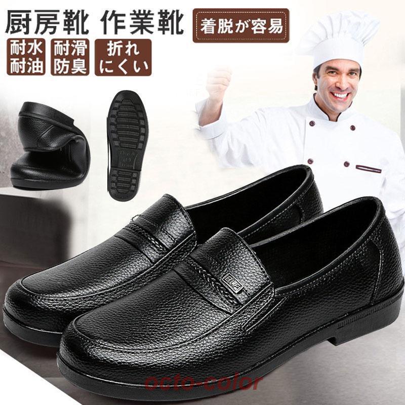 コックシューズ メンズ ビジネスシューズ ローファー キッチンシューズ 防水 シューズ 厨房 作業靴 キッチン 調理靴 雨靴 耐油 耐滑 レストラン 業務用