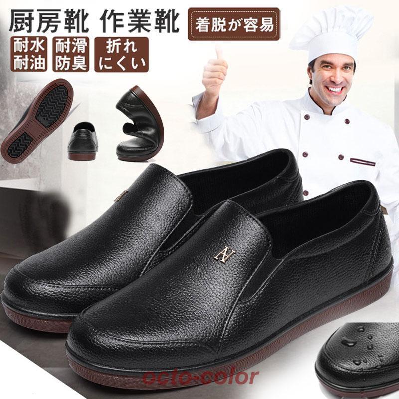 コックシューズ メンズ ビジネスシューズ ローファー キッチンシューズ 防水 シューズ 厨房 作業靴 キッチン 調理靴 雨靴 耐油 耐滑 レストラン 業務用