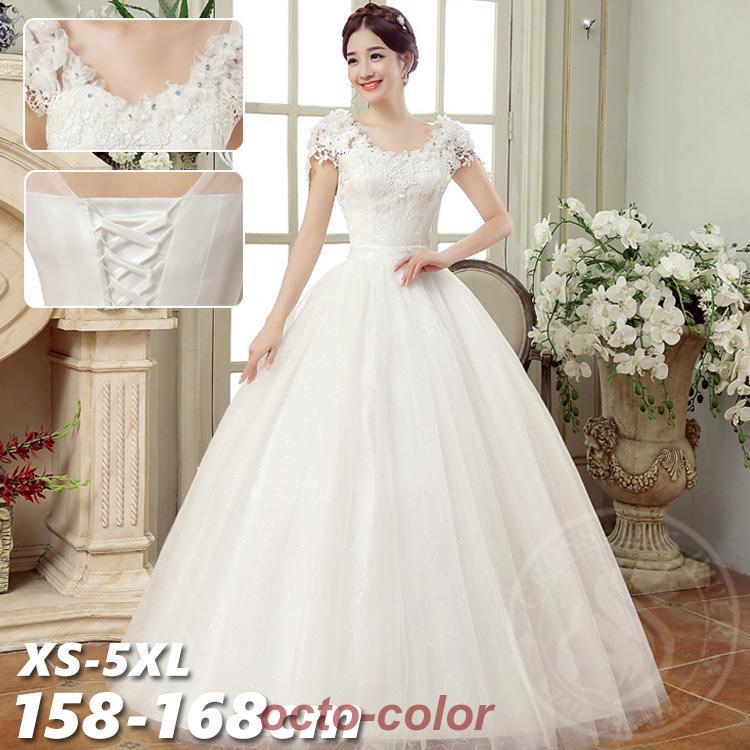 結婚式ドレス 花嫁 ウエディングドレス ロング 白 ワンピース 袖なし wedding dress 大きいサイズ ドレス 二次会 刺繍 スパンコール 花柄レース レディース サ