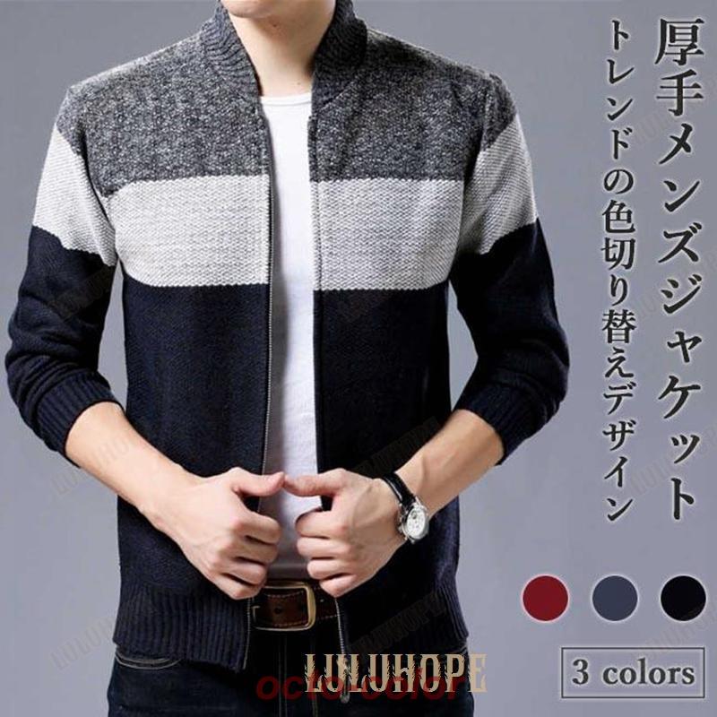 ジャケット メンズ 冬ジャケット 厚手 ニットジャケット スタイリッシュ 裏起毛ジャケット 冬 暖かい アウター 秋 メンズジャケット 色切り替え
