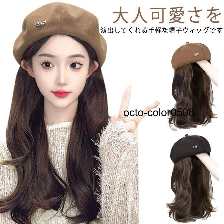 小顔効果 帽子付きウィッグ ウィッグ付きキャスケット 帽子付きウィッグ 帽子 毛付き帽子 脱毛 髪付き帽子 ウィッグ付き帽子 ロング 可愛い