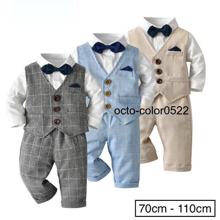 70-80cm:ロンパース+ベスト+ズボン+蝶ネクタイ