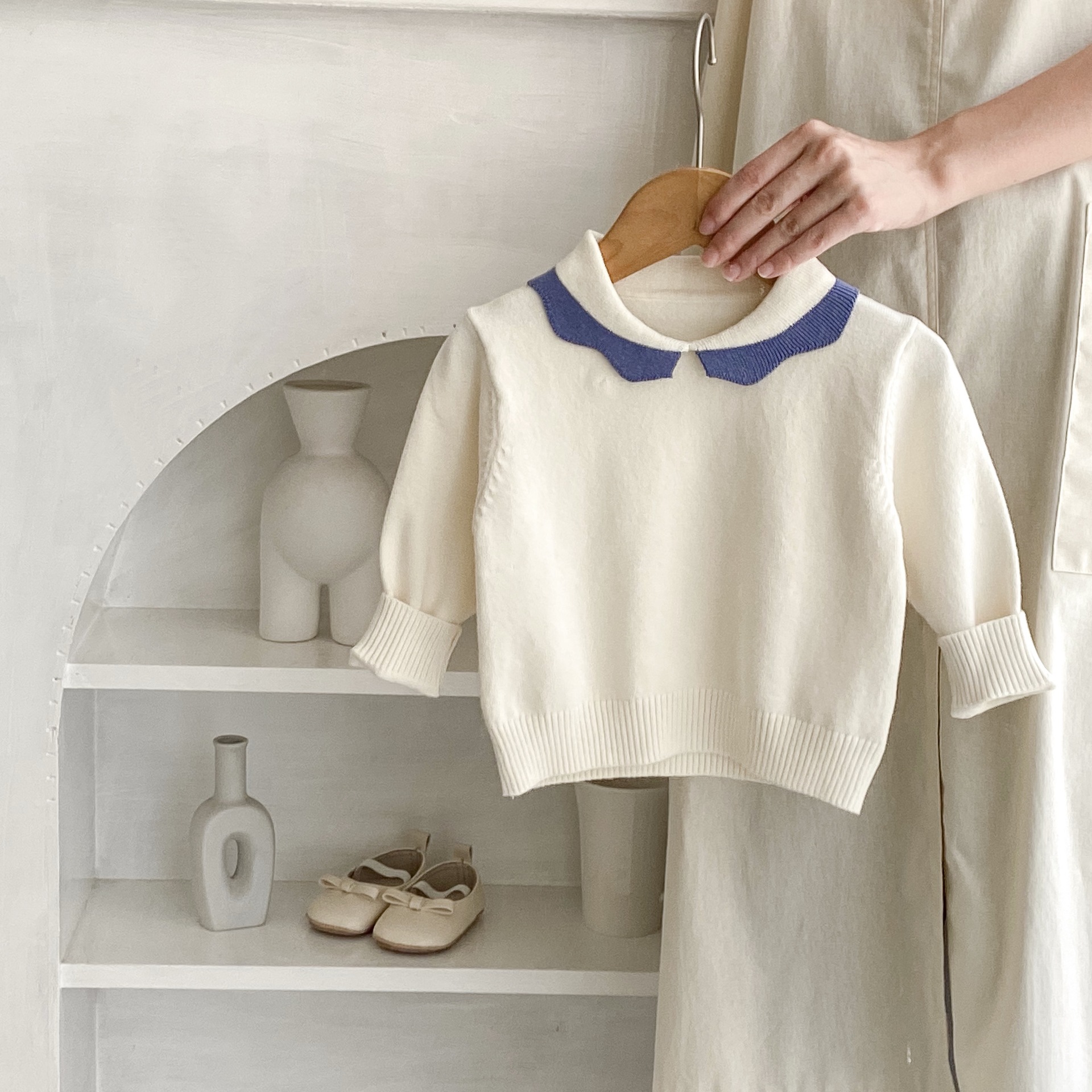 商品名:ベビーニットセーター ブルーカラー付き 長袖 秋冬 防寒 シンプルデザイン 子供服 キッズトップス (66-100cm)