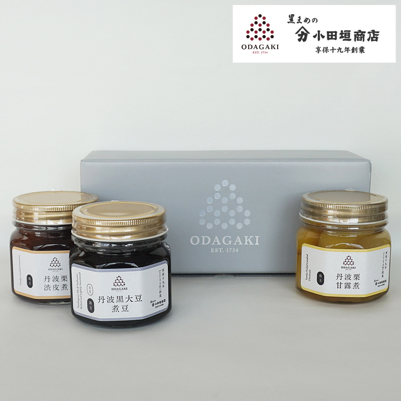 黒豆 丹波 黒大豆 煮豆 黒豆煮 ギフト 栗 甘露煮 栗渋皮煮 中ビン詰合せ 3本セット (化粧箱入り) 国産 贈答 お中元 御歳暮 小田垣商店 公式通販