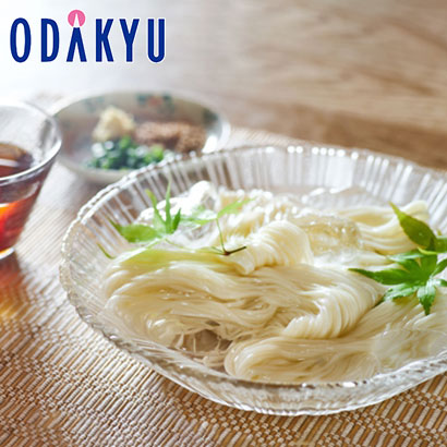 愛知県産小麦「きぬあかり」を100%使用したつるつる・もっちり食感が特徴のひやむぎです。暑い夏にぴったりの爽やかなのど越しです。