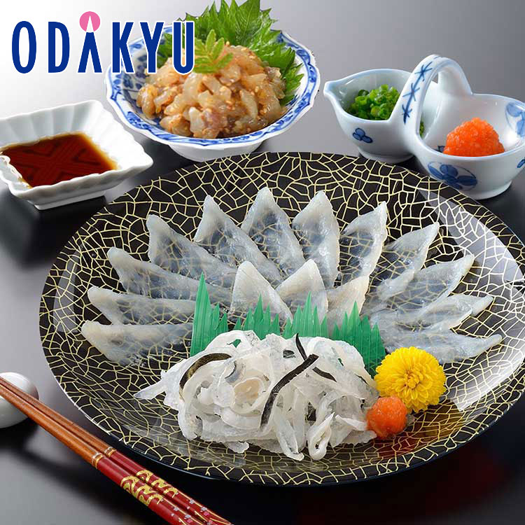 【商品特長】ふくの王様とらふくの刺身と、とらふく塩辛のセットです。本場の職人により菊のように盛り付けられたとらふく刺身と、胡麻の風味が効いたとらふく塩辛、それぞれの食感と旨味を食べ比べながらお楽しみください。