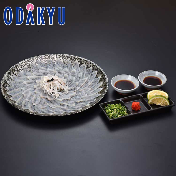 【商品特長】当店で一番売れているとらふぐ刺身です。身質が一番良いとされる「1.1〜1.2kg」サイズの活きとらふぐを厳選し、板前たちが丁寧に調理します。「-80℃」で急速冷凍しますので、解凍後も鮮度抜群の状態で、ふぐの旨味をそのままにお召し上がりいただけます。