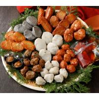 【内容量】さつま揚げ5枚、あじさつま5枚、いわし5枚、しんじょ5枚、ごぼう巻き3本、うずら包み3個、タコネギボール8個、いわし昆布ボール8個、ゆずごぼう8個 合計 50個入り