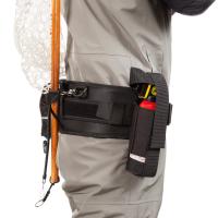 フィット感に優れ、ウェーダー内への浸水防止や装着時の腰の負担軽減にも役立つウェーディングベルト。ウェーディングスタッフやペットボトルホルダー、熊撃退スプレーなどを左右のベルクロテープで好みの位置に固定できるので、通常のベルトに通した時のように、歩くたびにずれてしまうといったわずらわしさがありません。背面にはネットコード用Dカン付きのランディングネットホルダーも付属。NEWモデルは幅を広げ内側に押圧突起を付けたことによりサポート性能が向上。市販の小型膨張式緊急浮力体が装着できるストラップも新たに付属しました。寒い時期に厚着をしてクロロプレンウェーダーを着用した際にも対応できるLサイズもラインアップに追加。