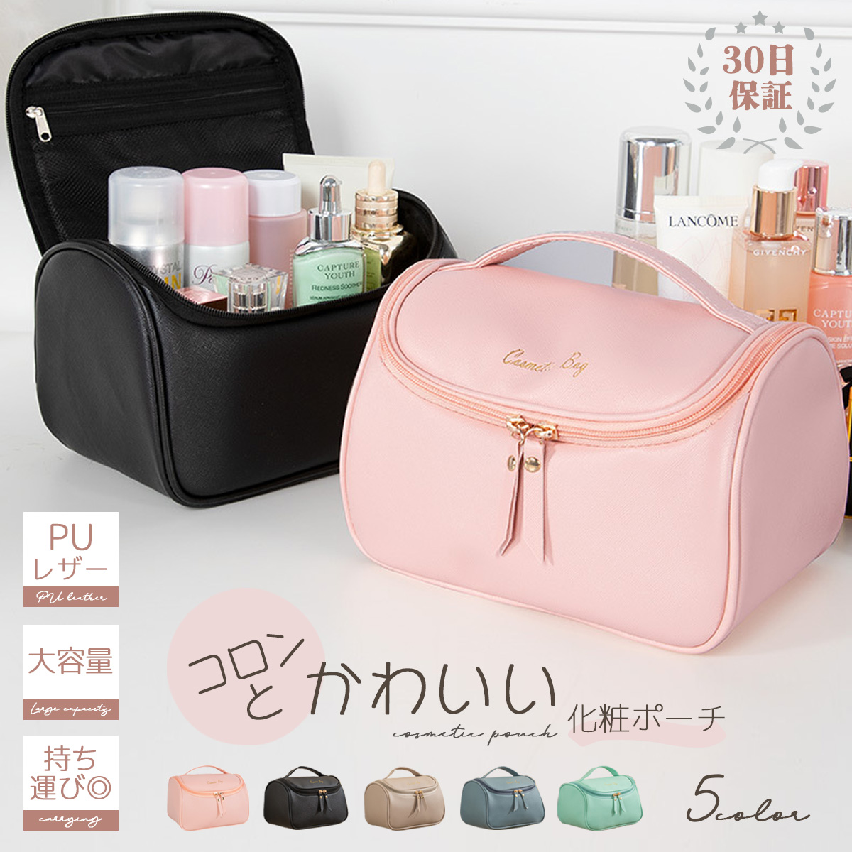 商品名: 化粧ポーチ pu 大容量 使いやすい シンプル 自立 防水 メイクポーチ コスメポーチ バニティポーチ 化粧ポーチ