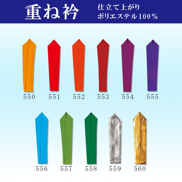 重ね衿 着物 振袖 訪問着 橙色 赤 オレンジ 赤茶 紫 青紫 水 黄緑 緑 銀 金