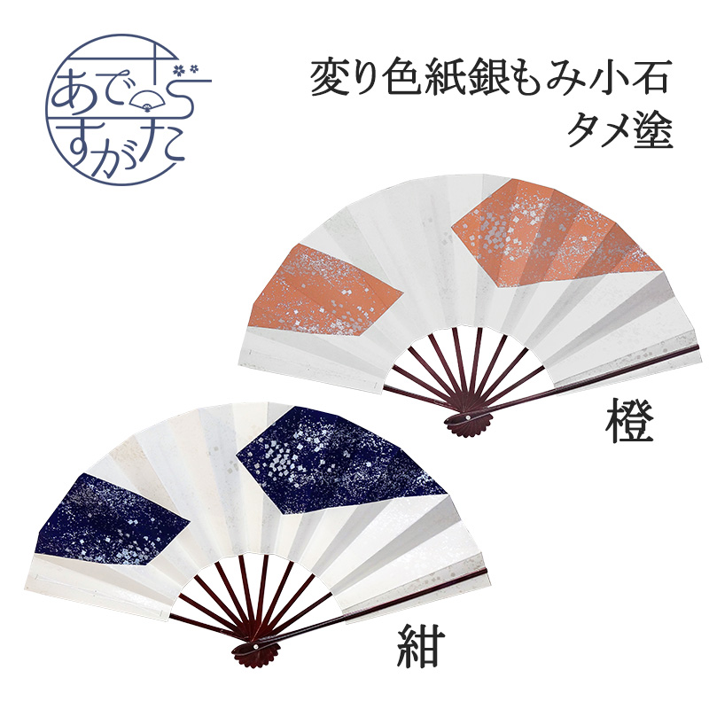 舞扇 舞扇子 アウトレット お買得 現品限り 特価 踊り用 日本舞踊 タメ塗 9寸5分 橙 紺 ネイビー オレンジ 銀 色紙 銀もみ 小石 シンプル 上品 おしゃれ