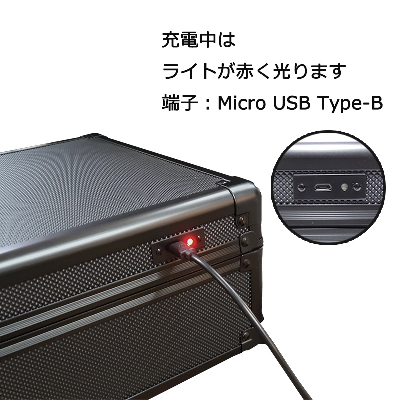 ・2600mAhのリチウム電池内蔵、付属のUSBケーブルで充電して繰り返し使用可能です。