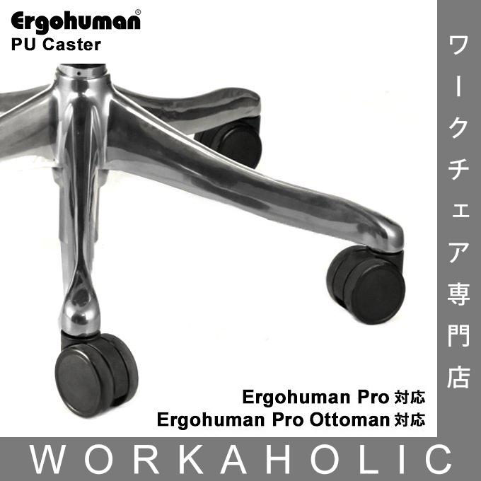 エルゴヒューマン プロ 専用PUキャスター 5個セット(1脚分) Ergohuman スマート、プロ、プロオットマン、フィット2、プロ2、プロ2オットマンに適合