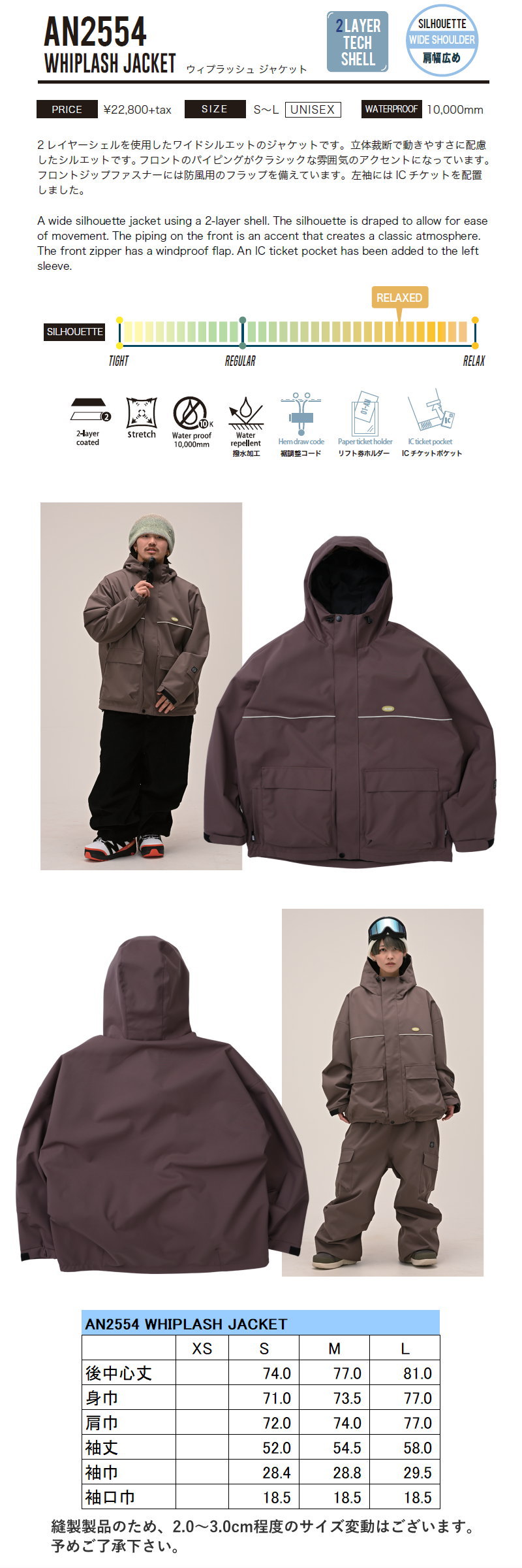 2 レイヤーシェルを使用したワイドシルエットのジャケットです。立体裁断で動きやすさに配慮したシルエットです。フロントのパイピングがクラシックな雰囲気のアクセントになっています。フロントジップファスナーには防風用のフラップを備えています。左袖にはIC チケットを配置しました。 |