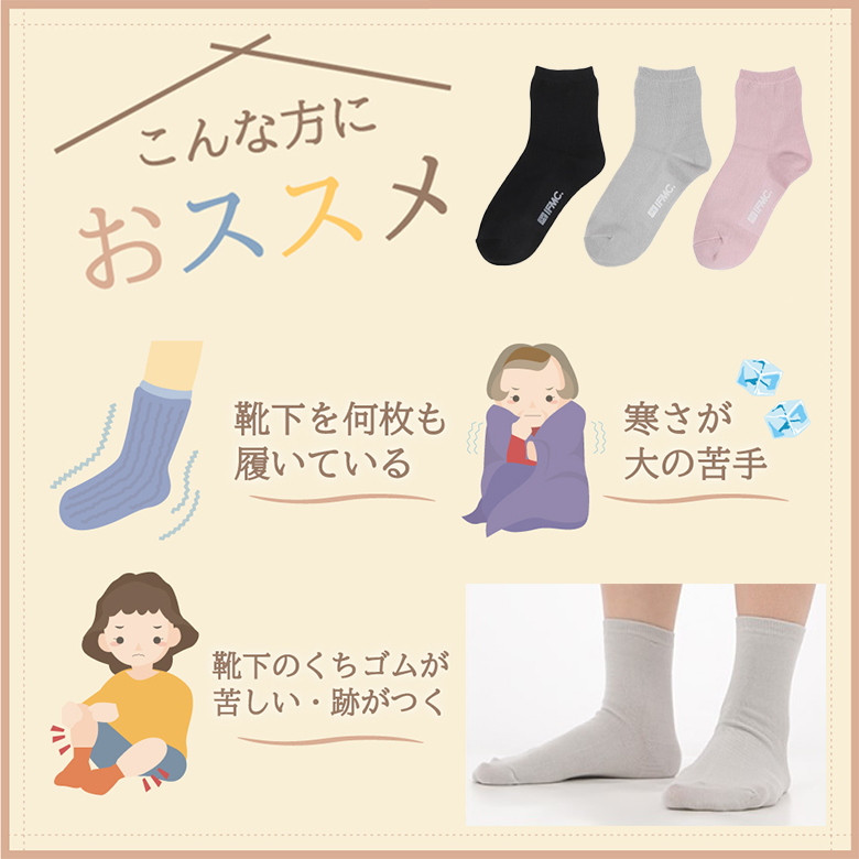 | 関連キーワード | 防寒靴下 あったか 暖か あたたかい 温かい 温か 冬 エアコン 冷気 底冷え 冷たさ 寒さ 寒い 寒さ対策 冬用 年中 オールシーズン 快適 むくみ 就寝 おやすみ 眠り 血行 血流 体温 足冷え 足裏 つま先 足先 かかとケア 踵 男女兼用 ぬくもり 足 脚 踝 くるぶし ウォーマー サポーター ルームソックス 履きやすい 分厚くない 薄くない 着ぶくれしない 履いて寝る 眠りを妨げない 邪魔しない 楽 ラク ズレない フィット ずれない ズレにくい ずれにくい ズレ落ちない 落ちない オフィス 外 屋外 室内 部屋 土間 和室 洋室 フローリング レーヨン 絹 シルク 血行促進 イフミックサポーター バンド 巻くだけ 締め付けいらず 肌に触れるだけ 足首 くるぶし 踝 神経 骨 温泉療法 特許取得 温活 安眠 高齢者 保温 痛み 冷え対策 登山 想いを繋ぐ百貨店【TSUNAGU】 |