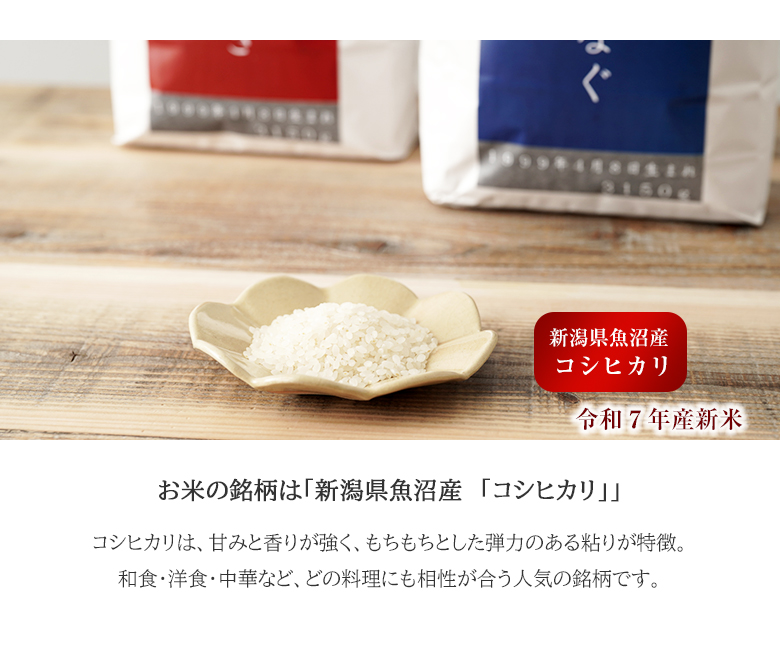 | お米の銘柄 | 新潟県魚沼産コシヒカリ |