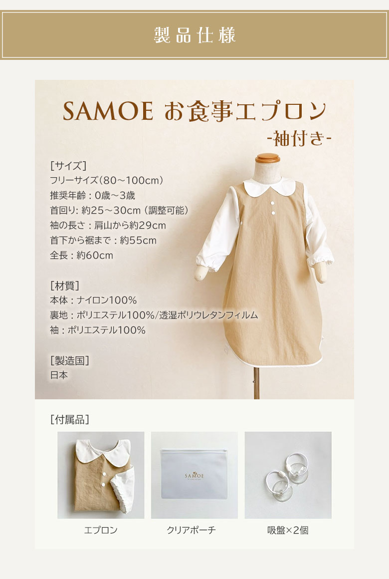 [商品名]SAMOE(サモエ)お食事エプロン デザイン 袖付き