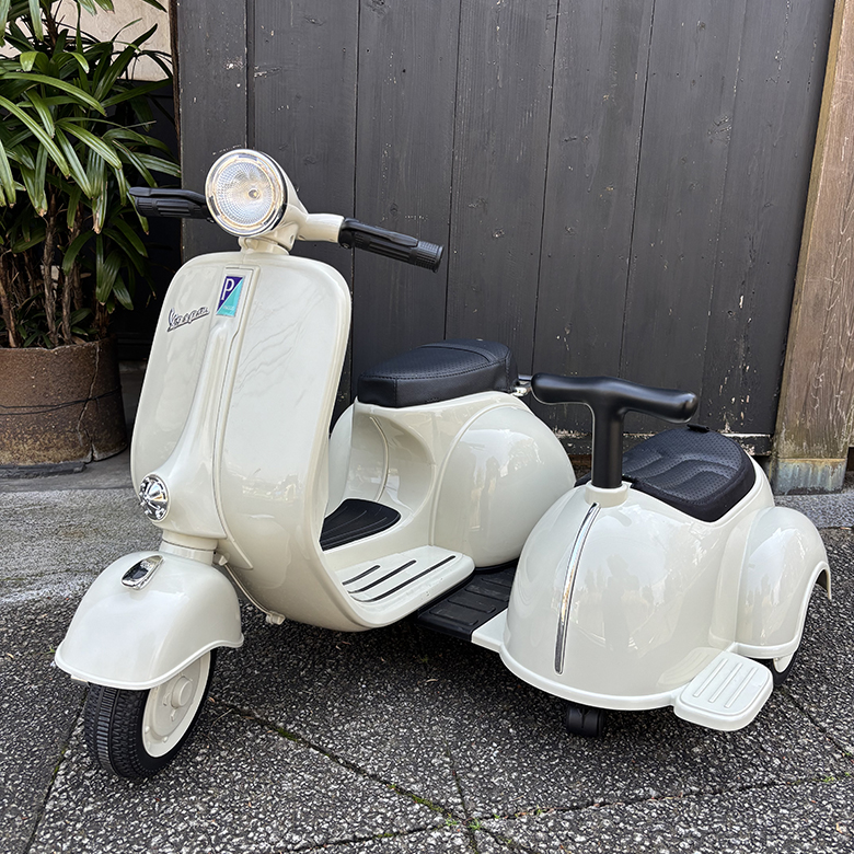 ハンドルとペダルで簡単操作!電動乗用ミニベスパ2シーター