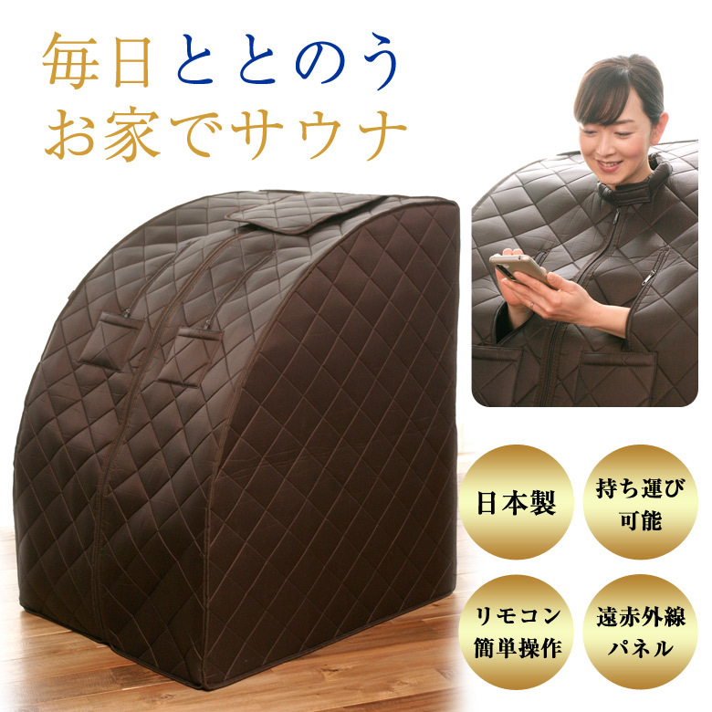 | 商品説明 | 自宅で好きな時にサウナが楽しめる『遠赤外線ルームサウナ』 遠赤外線による温熱効果で、65℃の温度でも驚くほど体の深部まで温めます。 折りたたんでしまえる設計なので省スペース。 サウナ初心者にはもちろんのこと、サウナ通の方にも喜んでいただける本格仕様です。 設置工事不要でご自宅が誰にも邪魔されない贅沢なパーソナル空間を演出。 あなたの家で快適なサウナをお楽しみください。 |