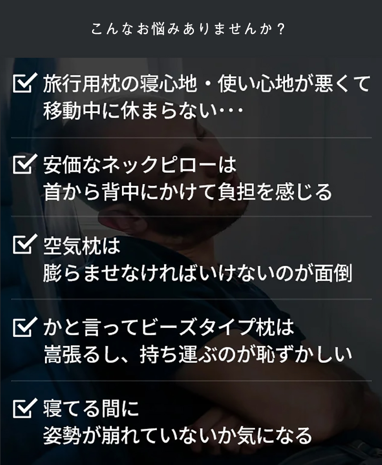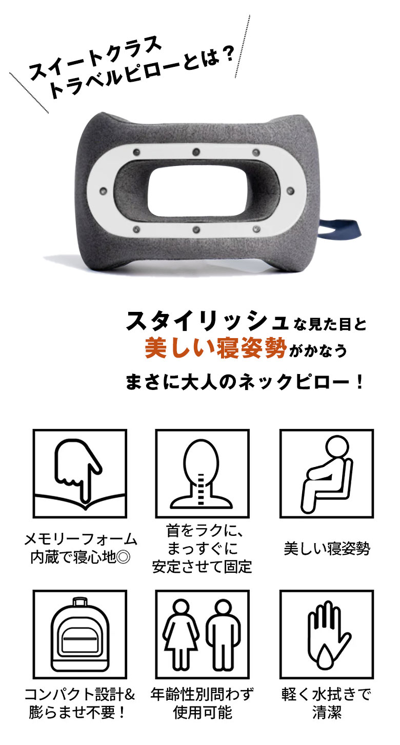 人間工学に基づいたスイートクラス・トラベルピローで、移動をもっと快適且つスマートにしませんか?